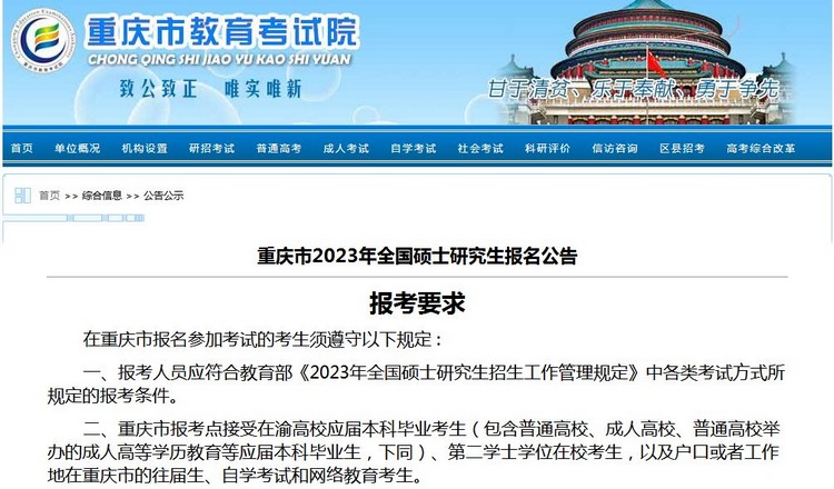 《重慶市2023年全國碩士研究生報名公告》發布
